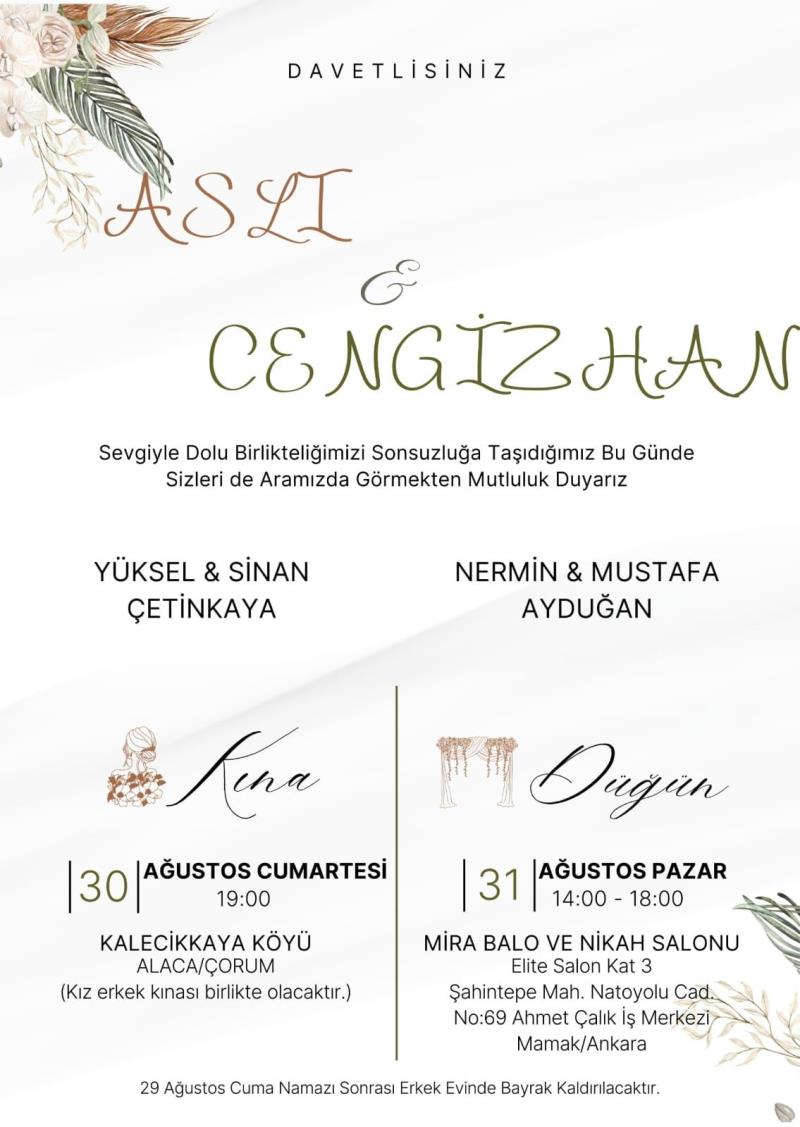 Sevgiyle dolu birlikteliğimizi sonsuzluğa taşıdığımız bu mutlu günde, sizleri de yanımızda görmekten onur ve mutluluk duyarız. 🤍